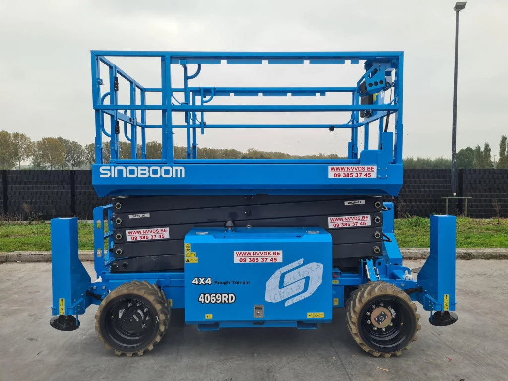 De Sinoboom 4x4 diesel schaarlift MET stabilisatoren en NON-marking ruw terreinbanden is 178cm breed, 380cm lang en heeft een maximale werkhoogte van 14.20 meter*. Het brede platform heeft een hefvermogen van 365kg en kan bovendien nog 150cm uitgeschoven worden, waarop nog 140kg gewicht kan. Dankzij het uitschuifbare platform ontstaat een zeer ruim werkplatform met een totale lengte van 4m30. Het eigen gewicht van het toestel bedraagt 5180kg. De NON-marking ruw terreinbanden maken dit de ideale schaarlift voor uw werken in (geventileerde) binnenruimte of buiten op (on)verharde en ruwe of vlakke ondergrond.