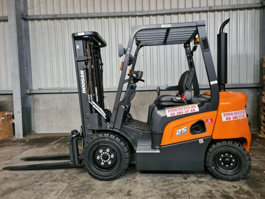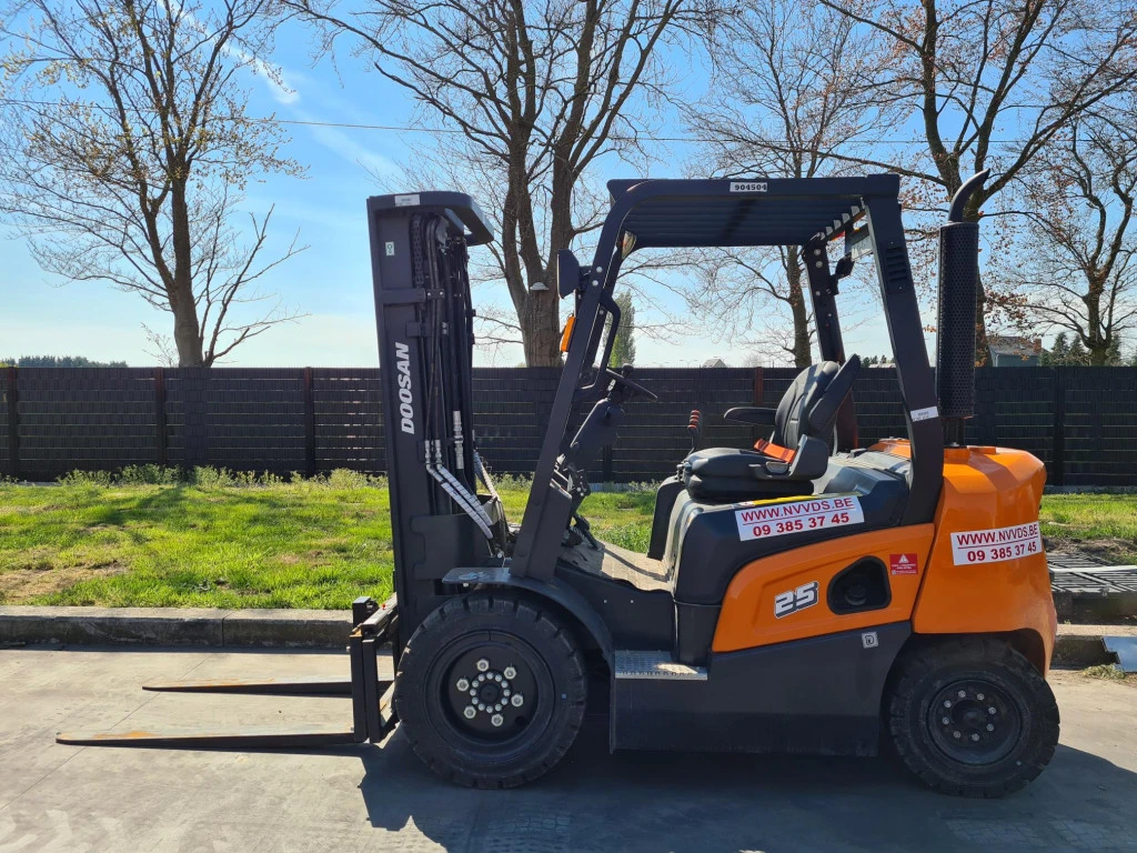 De DOOSAN D25G EN D25NXP zijn 4-wiel triplex diesel vorkheftrucks met 2.5ton hefcapaciteit en 4m70 hefhoogte. De D25G vorkheftruck heeft een breedte van 116.5cm en doorrijhoogte van 214cm. De draaicirkel bedraagt 2300mm. De D25NXP vorkheftruck heeft een breedte van 129cm en doorrijhoogte van 216cm. De draaicirkel bedraagt 2330mm. Beide types vorkheftrucks zijn voorzien van volrubber zwarte banden. Voorts beschikt de vorkheftruck over een sideshift en 3 mechanische hendels om de heftruck te bedienen: 1 hendel om last op de vorken omhoog en omlaag te heffen, 1 hendel om mast te kantelen en 1 hendel voor de sideshiftfunctie.