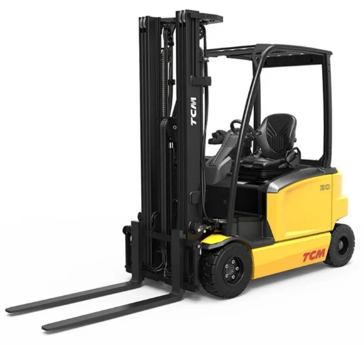 De TCM FB20L-E4 is een elektrische 4-wiel triplex vorkheftruck met 2ton hefcapaciteit en 4m75 hefhoogte. Het is een uiterst compacte vorkheftruck met breedte van 114cm en doorrijhoogte van 212.5cm. Bovendien heeft deze heftruck volrubber NON-marking banden en een kleine draaicirkel van 1770mm. Voorts beschikt de vorkheftruck over een sideshift en uiterst ergonomische fingertip bediening om de heftruck te bedienen: 1 hendel om last op de vorken omhoog en omlaag te heffen, 1 hendel om mast te kantelen en 1 hendel voor de sideshiftfunctie.