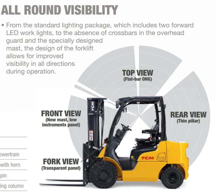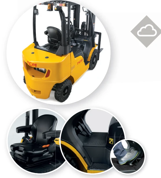 De TCM FD 40E2 is een 4-wiel triplex diesel vorkheftruck met 4ton hefcapaciteit en 4m70 hefhoogte. Deze vorkheftruck heeft een breedte van 141.5cm en doorrijhoogte van 229.6cm. De draaicirkel bedraagt 2580mm. Beide types vorkheftrucks zijn voorzien van volrubber zwarte banden. Voorts beschikt de vorkheftruck over een sideshift en 3 mechanische hendels om de heftruck te bedienen: 1 hendel om last op de vorken omhoog en omlaag te heffen, 1 hendel om mast te kantelen en 1 hendel voor de sideshiftfunctie.